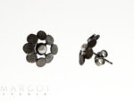 Artystyczne delikatne kolczyki srebrne, wykonane ze srebra próby 925, oksydowane. Kolczyki są w kształcie drobnego kwiatka, w którego centrum osadzono białą perłę hodowaną. Perłę otaczają ciekawie wypracowane, oksydowane płatki. Kolczyki zakładane są na sztyfty z zapięciem typu motylek. Kolczyki są bardzo lekkie i wygodne. Perfekcyjne złotnictwo ręczne. Prace rzemieślnicze mają oryginalny design i zawsze podkreślą indywidualny, dobry styl. Perły są symbolem piękna i uczciwości, pokazują nam głębię naszej istoty.