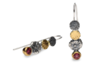 Misterne połączenie surowej formy i szlachetnych materiałów sprawia, że kolczyki stają się wyrazistym akcentem każdej stylizacji. Projekt wykonany ze srebra próby 925 zachwyca głębią uzyskaną dzięki procesowi oksydowania, która stanowi idealne tło dla elementów pokrytych 22-karatowym złotem. Wisząca forma na klasycznych, wygodnych biglach zapewnia swobodę ruchu, pozwalając naturalnym różowym turmalinom subtelnie rozświetlać twarz przy każdym gestie. Organiczna struktura powierzchni przywodzi na myśl unikatowe wytwory natury, czyniąc biżuterię niezwykle autentyczną i nowoczesną.