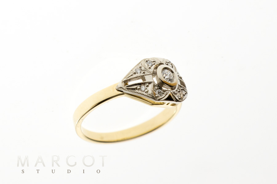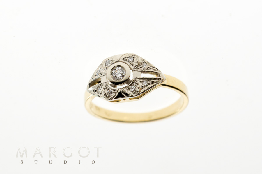 ZL71 złoty pierścionek z brylantami w stylu retro