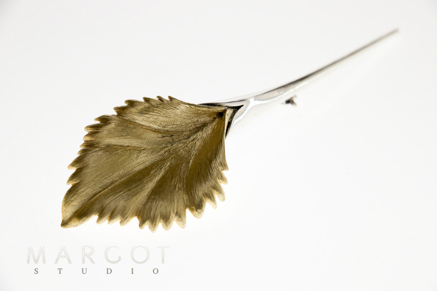 * srebro próby 925 polerowane, liść mosiądz polimerowany w kolorze intensywnego złota