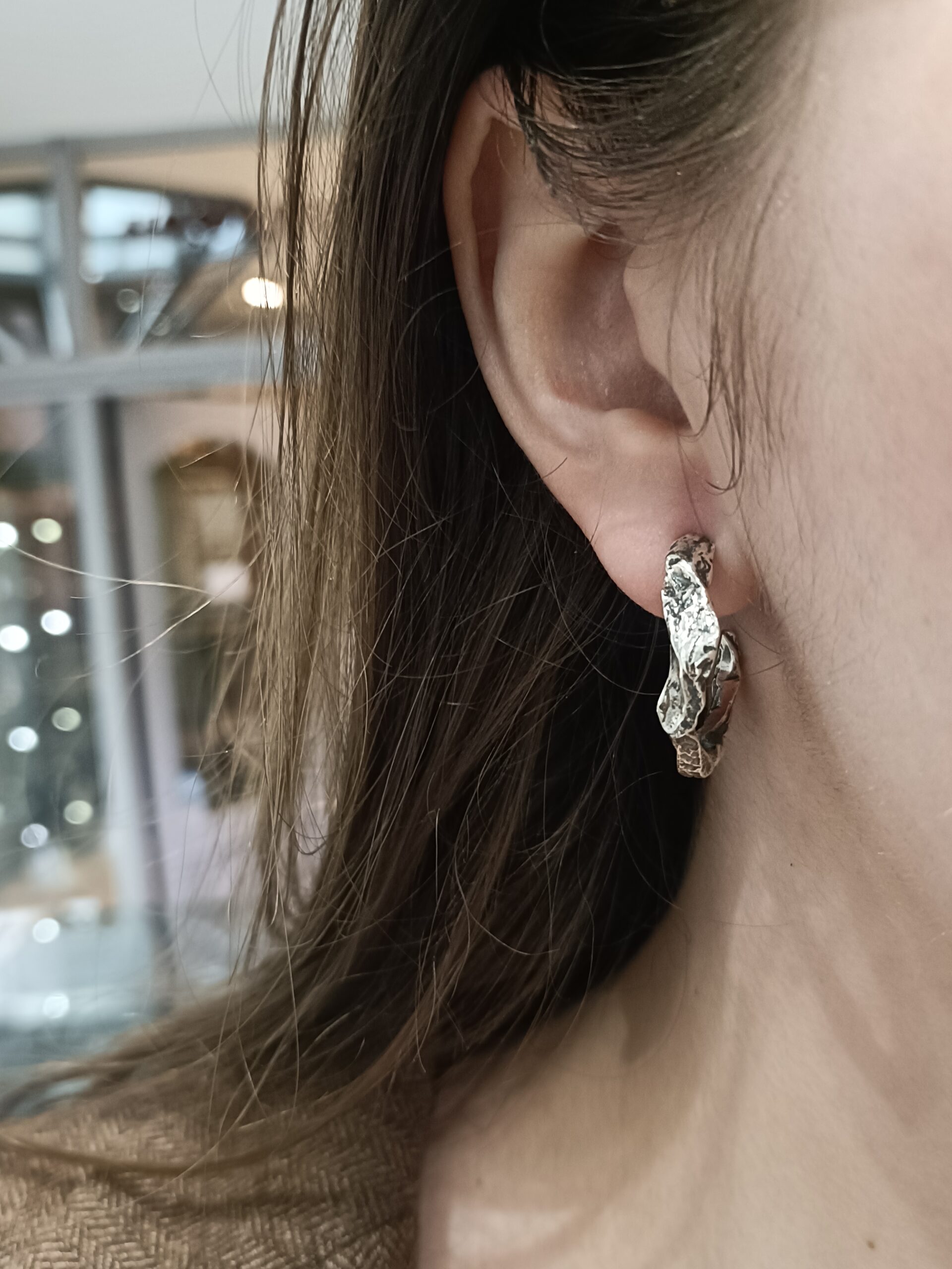 modne kolczyki, srebrne kolczyki, kolczyki na sztyfty, kolczyki ze srebra, biżuteria artystyczna Margot studio, rękodzieło, minimalistyczna biżuteria,