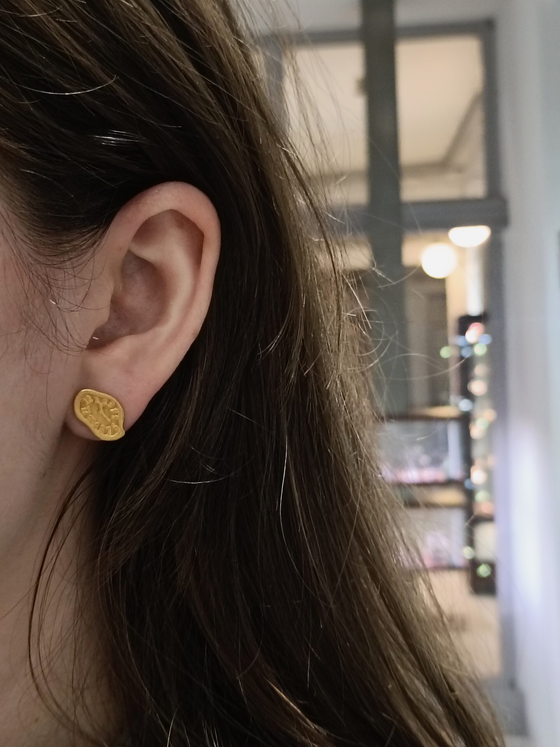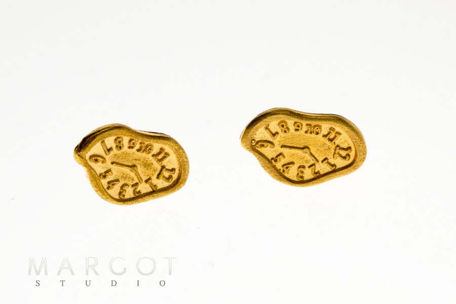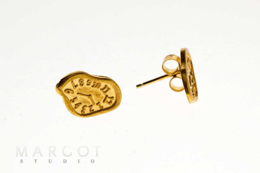 kolczyki na sztyfty, srebrna kolczyki, kolczyki złocone, żółte złoto, unikatowa biżuteria, rękodzieło, kolczyki zegarki, artystyczna biżuteria Margot studio