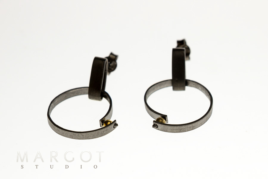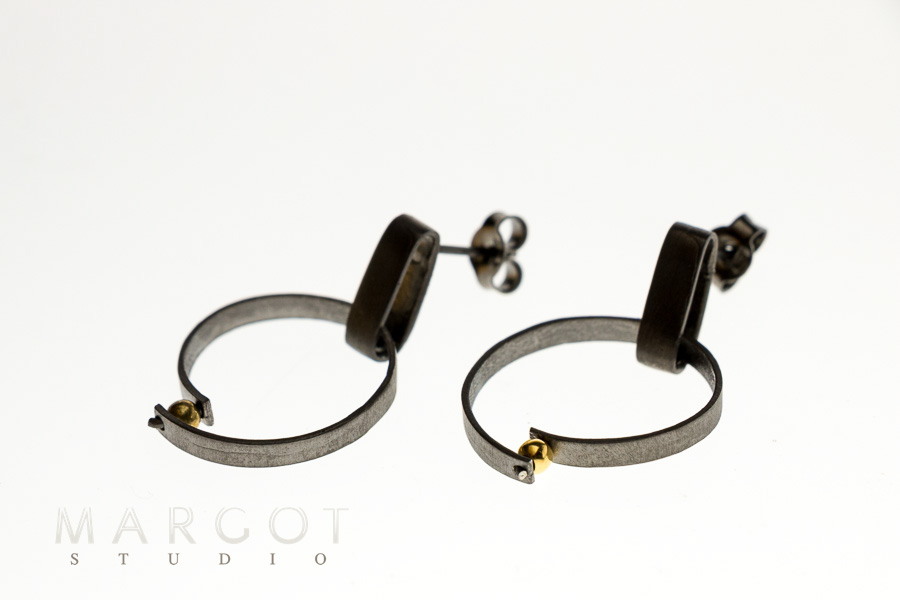 biżuteria artystyczna Margot studio, kolczyki na sztyfty, długie kolczyki, kolczyki oksydowane, nowoczesny design, srebro złocone, biżuteria ręcznie robiona