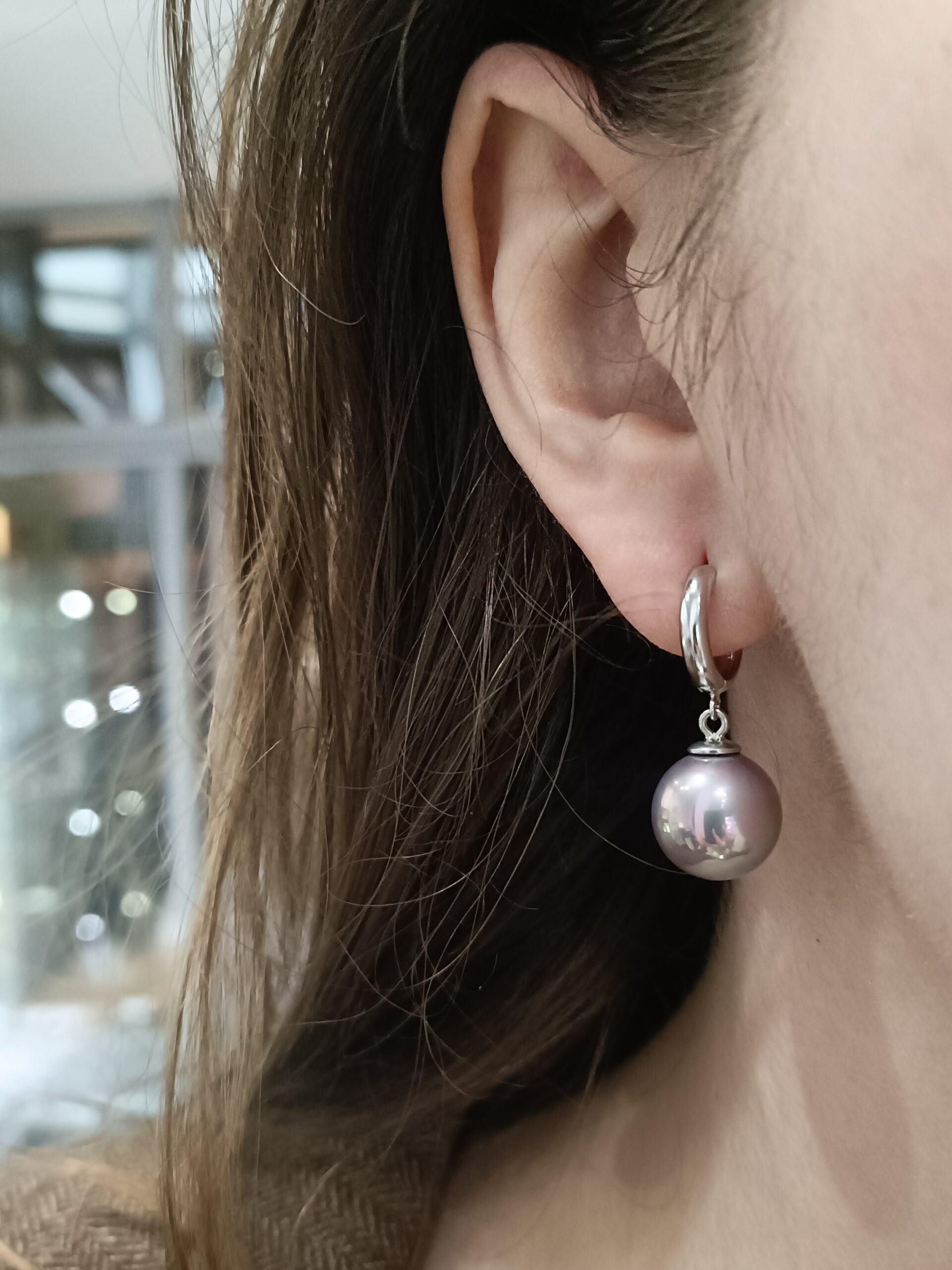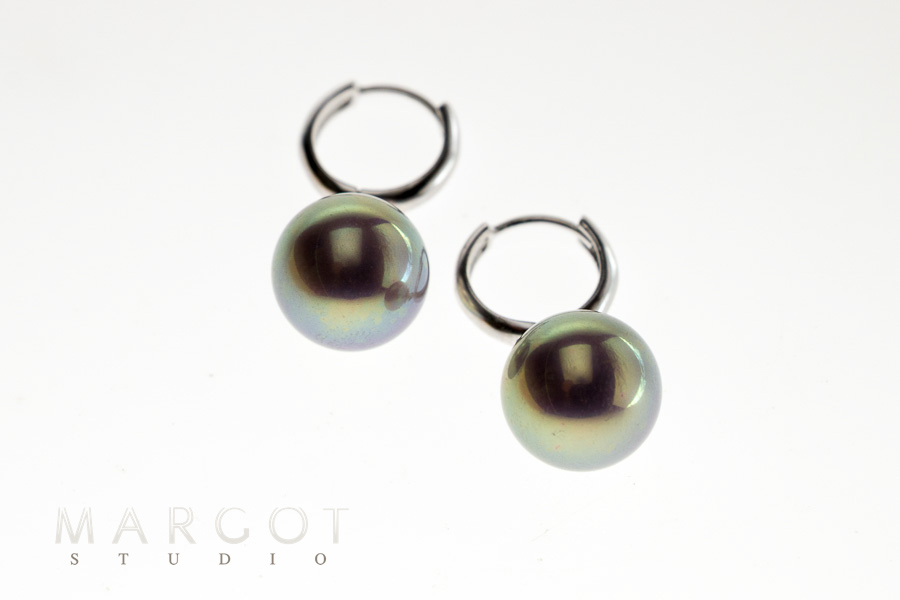 Kolczyki z perłami muszlowymi kolor ciemny grafitowy. Do wykonania kolczyków zostały użyte najwyższej jakości materiały – perły z muszli o rozmiarze 12 mm – kształt okrągły i srebro rodowane w próbie 925. Kolczyki są zakładane na okrągły, zamykany bigiel. Bardzo lekkie. Prezentują się elegancko, mogą być dopełnieniem codziennej lub wieczorowej stylizacji. Będą też pięknym dodatkiem na bardzo specjalne okazje.
