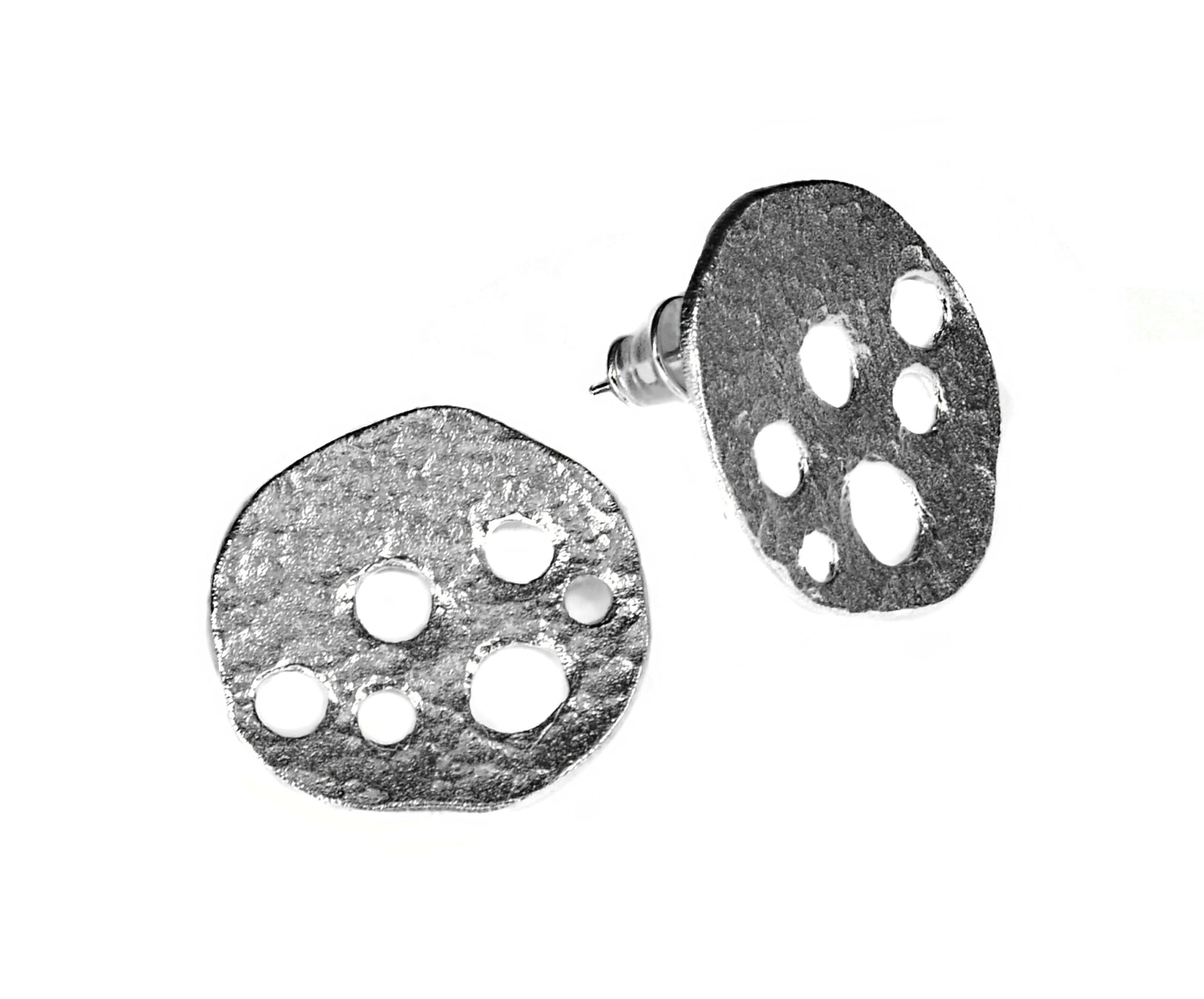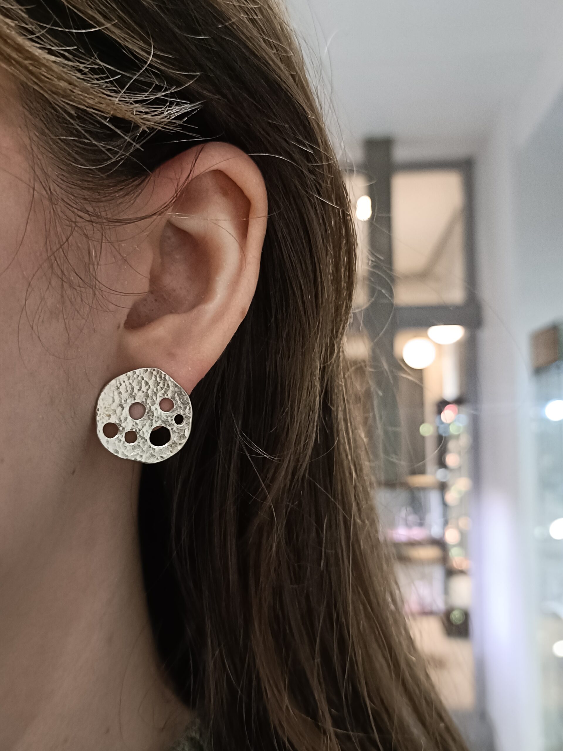 kolczyki srebrne koła. kolczyki na sztyfty. biżuteria artystyczna Margot studio. unikat. srebrna biżuteria. rękodzieło