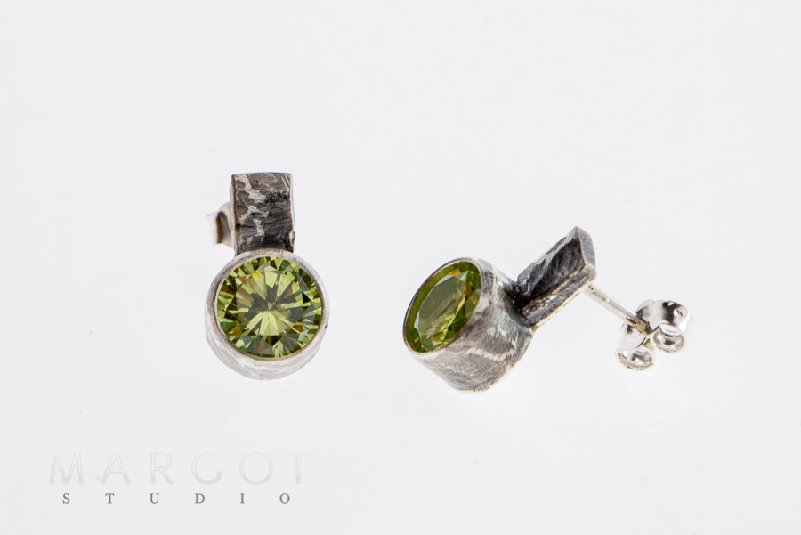 modne kolczyki, srebrna biżuteria autorska, polskie rękodzieło, artystyczna biżuteria, oryginalna biżuteria szlachetna, artystyczna biżuteria, srebro, zielona cyrkonia, srebro i cyrkonie