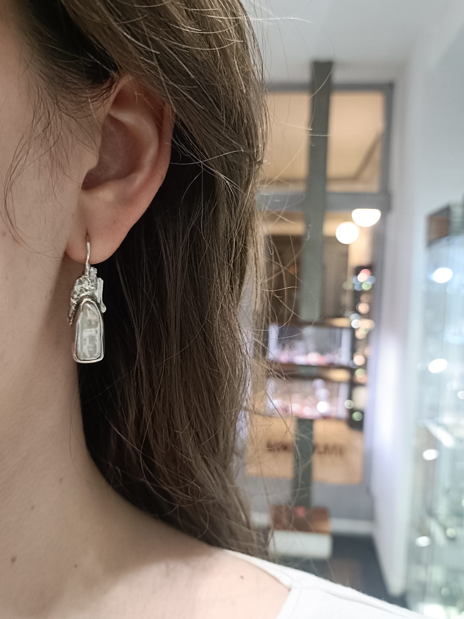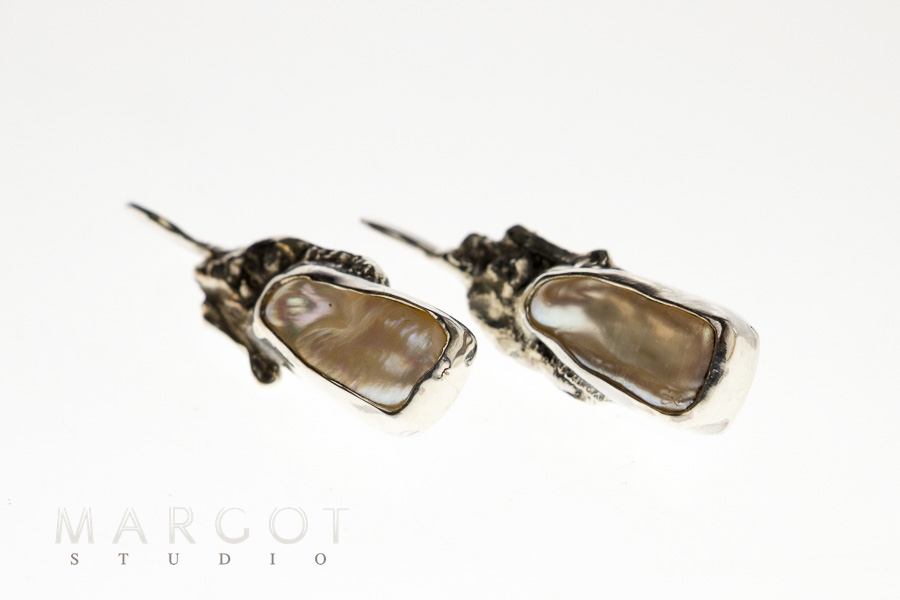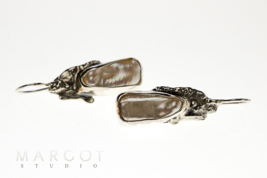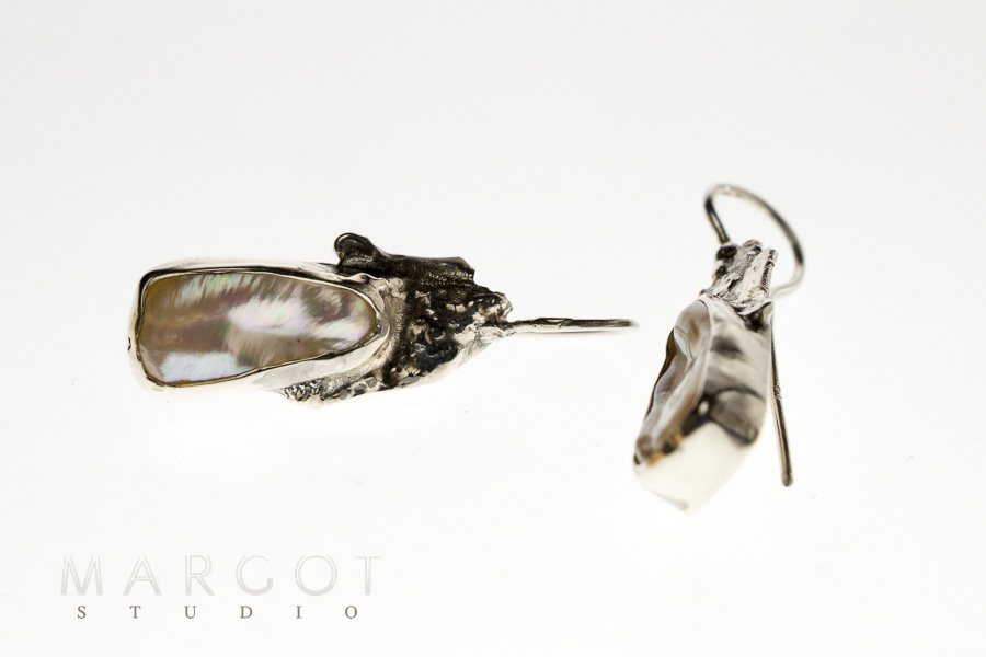 biżuteria artystyczna Margot studio, unikat, kolczyki z perłami, perły hodowane, artystyczna srebrna biżuteria, biżuteria ręcznie robiona, długie kolczyki z perłami hodowanymi