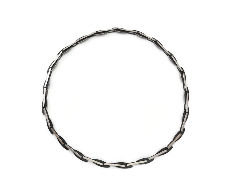 biżuteria artystyczna Margot studio, unikat, srebro oksydowane, oksydowana kolia, srebro satynowane, awangardowa kolia, biżuteria ręcznie robiona,
