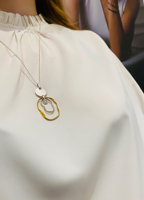 srebrna zawieszka, srebrny wisior koła, artystyczny wisior, rękodzieło, srebro złocone, artystyczna biżuteria Margot studio