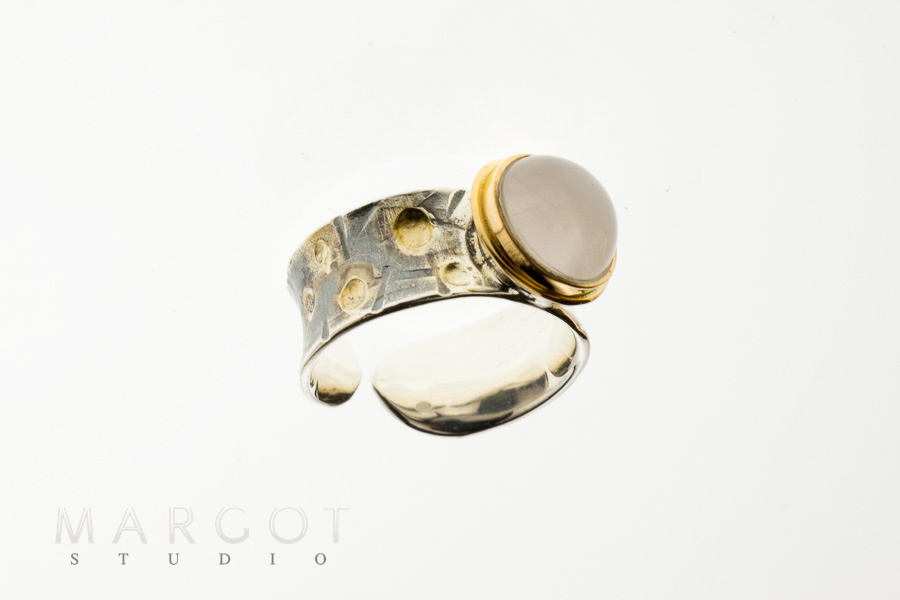 artystyczny pierścionek srebrny z kwarcem różowym, artystyczna biżuteria Margot studio, autorska bizuteria online, awangardowa biżuteria srebrna, biżuteria artystyczna z kamieniami naturalnymi, modna biżuteria, unikatowe pierścionki ręcznie robione
