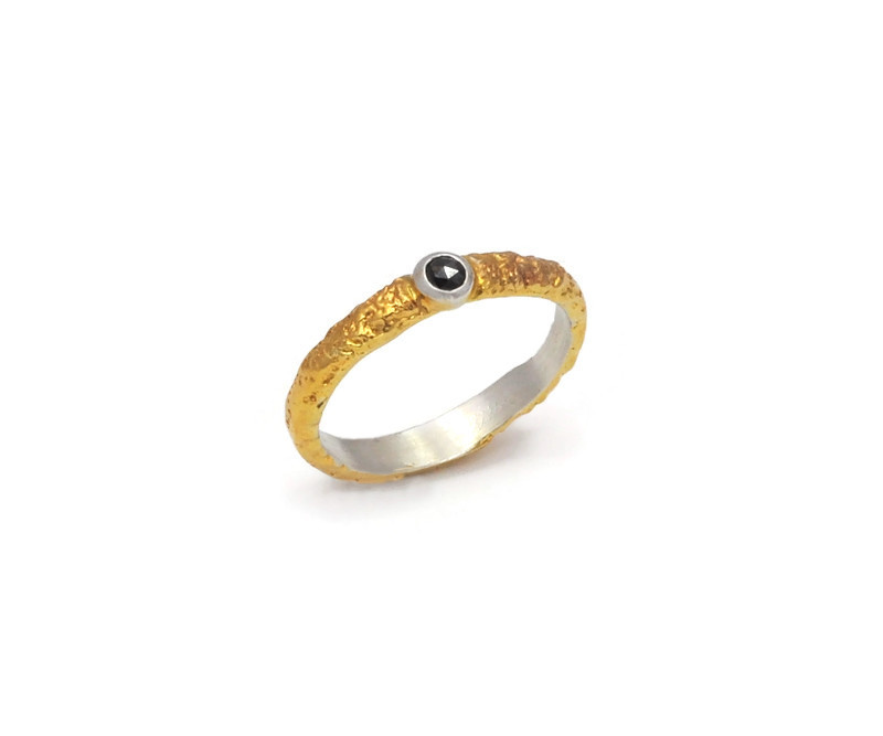PK-ES1009pierścionek srebrny z czarnym diamentem