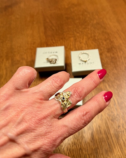 oryginalny pierścionek z czarnym diamentem, pierścionek z diamentem srebrny, srebrne pierścionki artystyczne, biżuteria z diamentemami, srebro złocone, biżuteria ręcznie robiona,