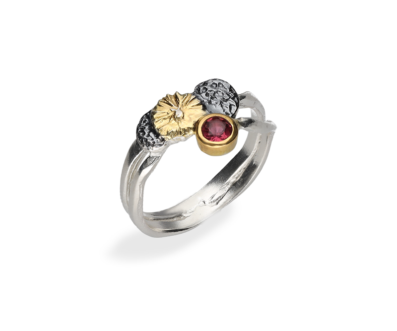 biżuteria artystyczna Margot studio, pierścionek z turmalinem, różowy turmalin, pierścionek srebrny, biżuteria artystyczna srebrna, biżuteria ręcznie robiona, oryginalny pierścionek z różowym turmalinem