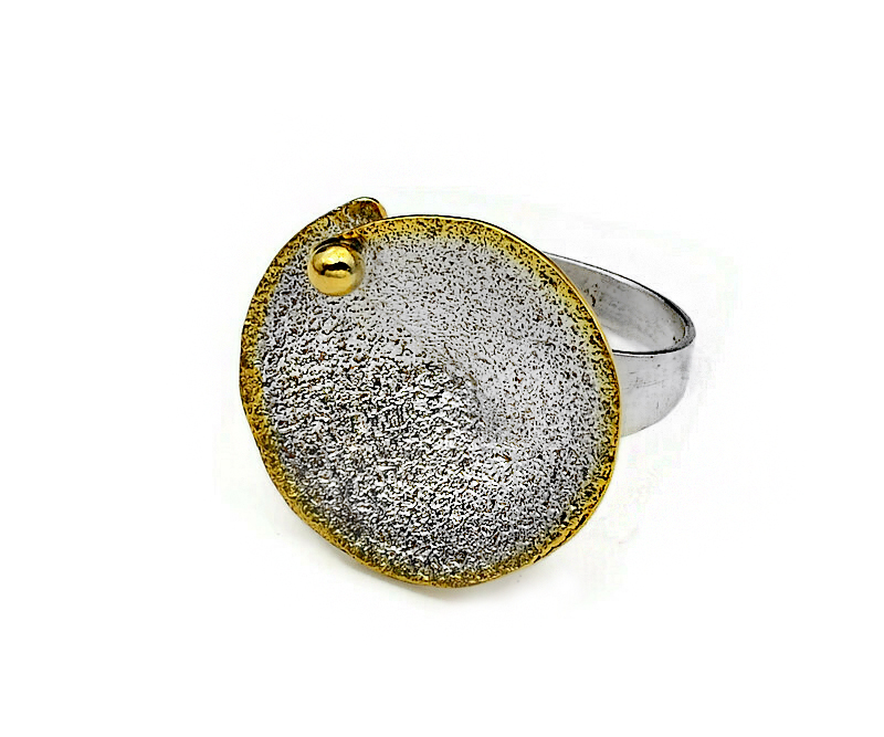 artystyczna biżuteria Margot studio, unikatowy pierścionek, geometryczna forma, srebro złocone, rękodzieło, oryginalna biżuteria