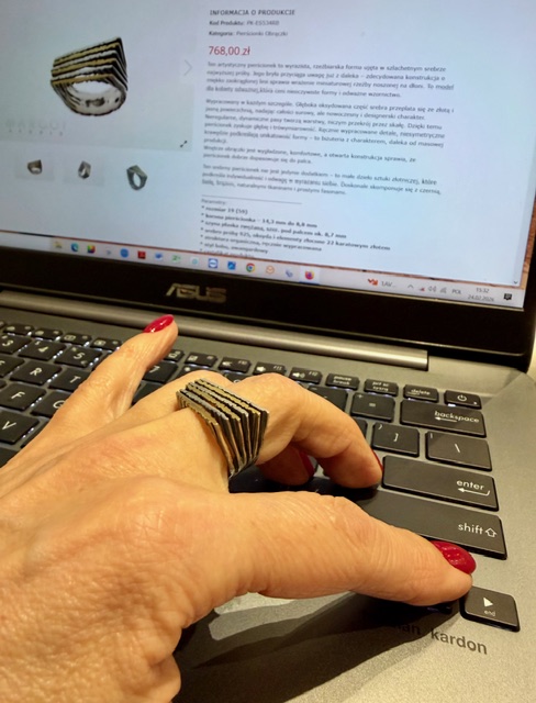 artystyczny pierścionek srebrny. pierścionek ze srebra. awangardowy pierścionek autorski. pierścionki margot
