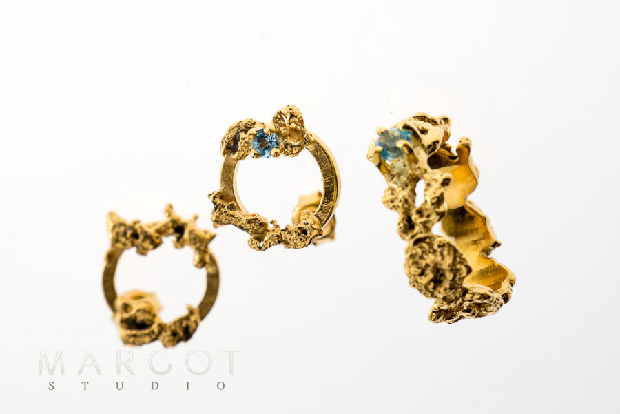 luksusowy pierścionek złoty z topazem niebieskim, pierścionek z topazem, topaz niebieski, artystyczna biżuteria Margot studio, biżuteria artystyczna z kamieniami naturalnymi, biżuteria ekskluzywna online, unikatowe pierścionki ręcznie robione, karolina bik