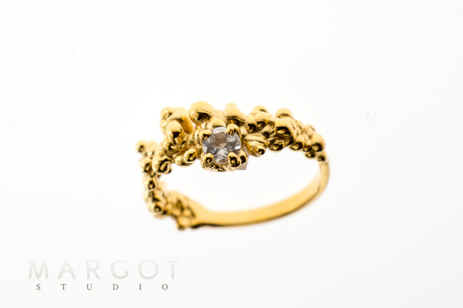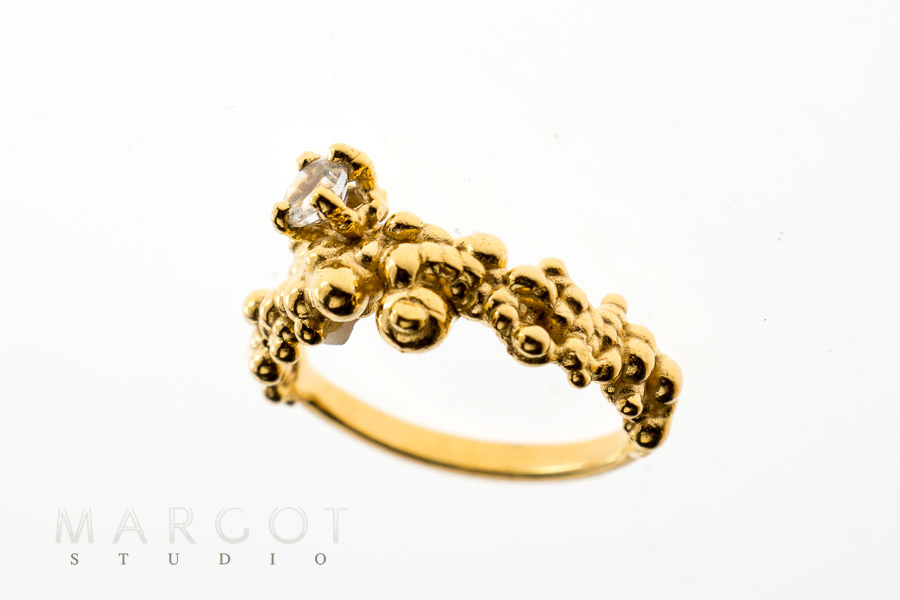 artystyczny pierścionek z białym topazem, srebro złocone, biżuteria artystyczna, unikatowy pierścionek, biżuteria artystyczna ręcznie robiona, margot, jubiler