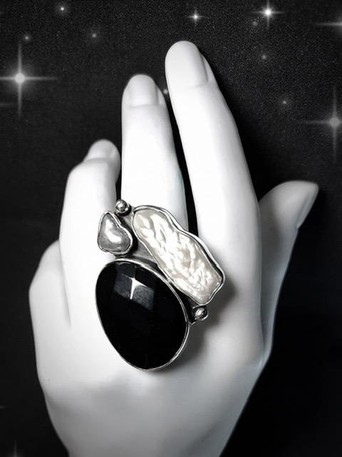 Wyjątkowy pierścionek srebrny z naturą. Został wykonany ze srebra najwyższej próby – próba 925. Centralnym punktem tego pierścionka jest naturalny, fasetowany czarny agat, perła keshi oraz perła hodowana słodkowodna. Każdy detal został starannie wykonany ręcznie, a każdy kamień precyzyjnie osadzony. To nie tylko pierścionek, to manifestacja indywidualności i unikalności. Jego unikatowy charakter sprawia, że żaden inny egzemplarz nie będzie identyczny. Nosząc ten pierścień, wyrażasz swój styl i zdolność do docenienia prawdziwej sztuki jubilerskiej.