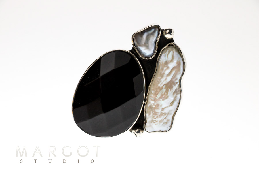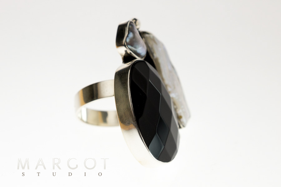 artystyczny pierścionek srebrny z agatem i perłami, artystyczna biżuteria, artystyczna biżuteria Margot studio, autorska biżuteria artystyczna, biżuteria artystyczna z kamieniami naturalnymi, biżuteria ekskluzywna online, oryginalna biżuteria srebrna, unikatowe pierścionki ręcznie robione